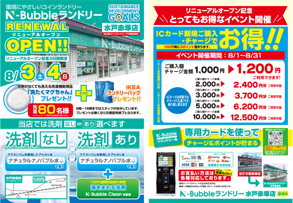 N-Bubbleランドリー水戸赤塚店(旧DEPO東赤塚店)リニューアルオープンに伴い