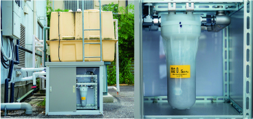 給水タンクと加圧ポンプの間に後付けで装置を設置することにより、「ナチュラルナノバブル水」を使用した洗濯が可能になります。
