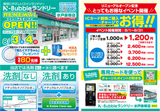 N-Bubbleランドリー水戸赤塚店(旧DEPO東赤塚店)リニューアルオープンに伴い